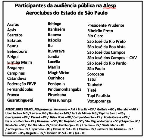 Ao final da audiência, ficou definido que todas as manifestações serão reunidas em um documento a ser entregue ao Governo do Estado. O objetivo é sugerir ações diretas para impedir o fechamento dos aeroclubes diante de disputas fundiárias, pressão econômica ou falta de incentivo público. “Esse documento fala sobre a importância dos aeroclubes, passa os dados referentes aos aeroclubes no estado de São Paulo, explica a situação de emergência deles e as consequências disso para a segurança nacional”, explicou Tenente Coimbra.