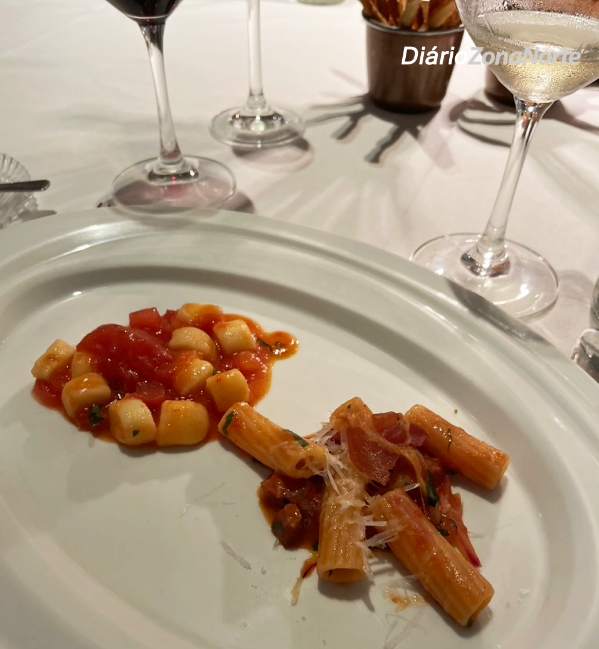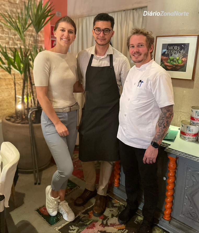 Os convidados provaram um menu completo elaborado com os produtos do consórcio OI Pomodoro, executado pelo experiente chef executivo do Grupo Ristorantino Henrique De Marchi Schoendorfer, cuja trajetória profissional inclui as cozinhas do Grupo Fasano, do  Al Pont de Ferr e Reblot –  em Milão e o  Noma de René Redzepi – em  Copenhague.
