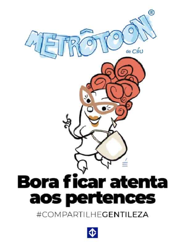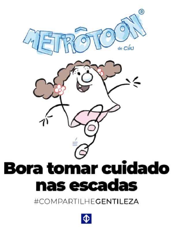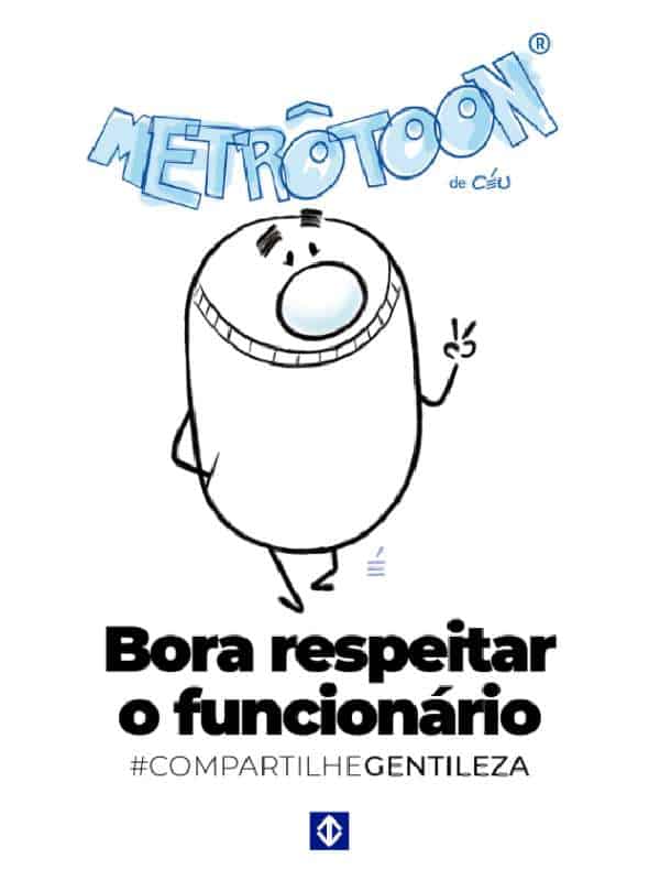 O Dia Mundial da Gentileza, celebrado neste domingo (13/11/2022) proporcionou ao Metrô de São Paulo realizar a Terceira Onda da Campanha Mais Gentileza, denominada #CompartilheGentileza, voltada para impulsionar as boas práticas comportamentais dentro do sistema metroviário. Com 14 personagens, os Metrôtoon saem das plataformas digitais e vão para as estações levarem mensagens gentis aos passageiros.