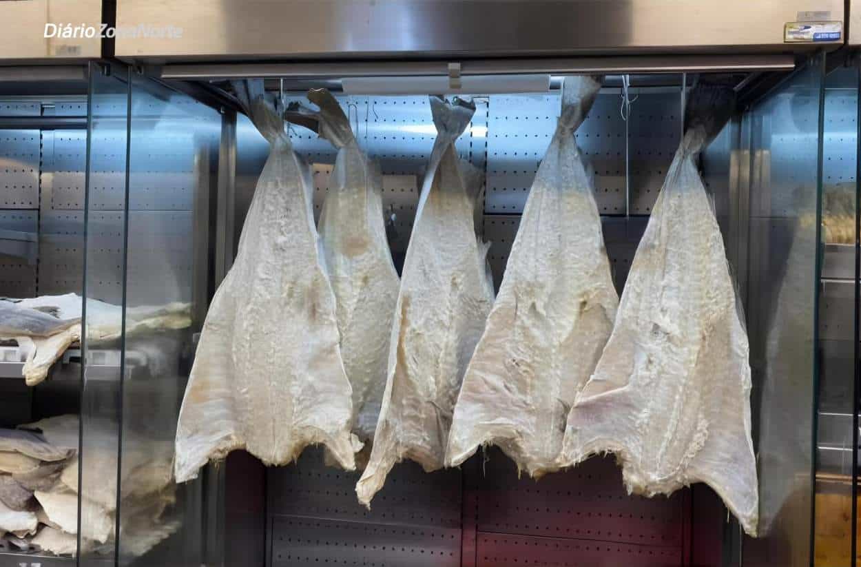 Bacalhau Gadus morhua comercializados na loja da Casa Flora, na tradicional Zona Cerealista do Brás, em São Paulo. O pescado norueguês está entre os ingredientes mais procurados na temporada de Páscoa.