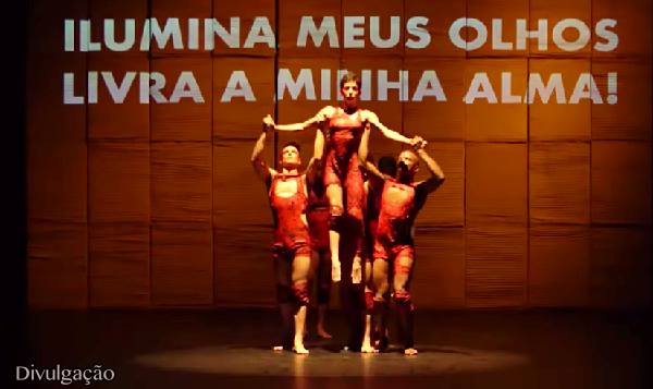 Em “Cura”, a ciência não briga com Deus; antes, busca o contato, nesta linha tênue entre a razão e a fé. As referências científicas, alicerçadas em projeções de palavras e frases, permeiam a cenografia enxuta e visualmente poderosa. É um poema concretista que grita ao público os elementos químicos e grafias emocionais, impregnados do sopro da vida e da voz infantil de Theo, narrador das histórias de matrizes africanas, imbricadas com sua própria história pessoal.