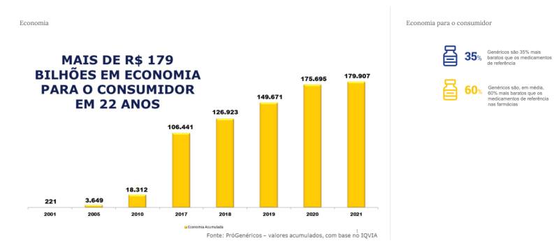A entidade ainda faz referências da importância dos genéricos no caso de doenças crônicas, “desde a chegada dos genéricos no mercado, o consumo de anti-hipertensivos cresceu 814% no Brasil, as medicações para controle do colesterol avançaram 2.704% e os antidiabéticos cresceram 1.707%”. E adverte que “com os biossimilares. Medicamentos mais completxos, que agora começam a chega ao nosso mercado, outro ciclo promissor está nascendo. Assim como ocorreu com os genéricos, o Brasil tem a oportunidade de se tornar grande produtos desses medicamentos, facilitando o acesso de pacientes portadores de doenças graves a novas opções de tratamento, com custos significativamente menores”.