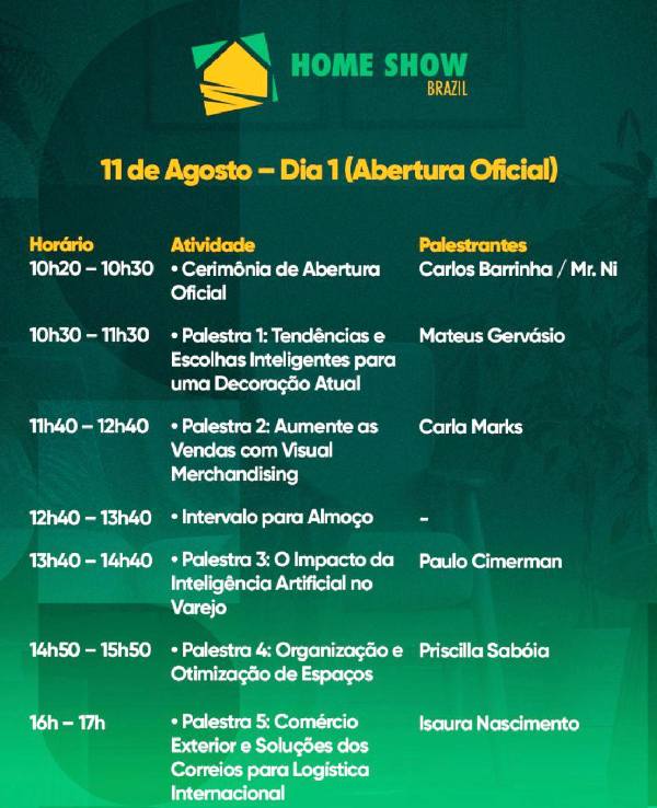 A Home Show Brazil 2025 se destaca por oferecer áreas temáticas e conteúdos que vão além da simples exposição de produtos. Confira os principais destaques: