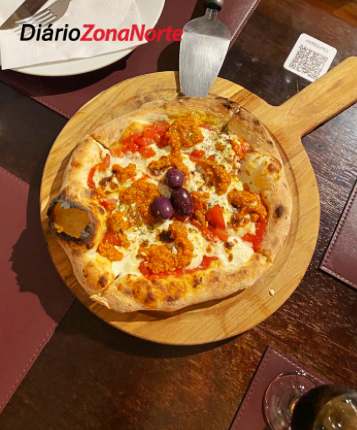 Ao fundo do salão, brilha o cinquentenário forno a lenha, manuseado com maestria pelo pizzaiolo Thiago Bertoldo. Dele, saem perfumadas redondas que seguem fielmente a receita original de Nápoles, assadas na temperatura de 480 °C entre 60 a 90 segundos.