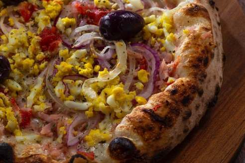 Sensacional, a releitura da pizza portuguesa. Batizada como “do Benja“, é uma homenagem a Benjamin Back – um dos jornalistas esportivos mais respeitados do Brasil e frequentador assíduo da unidade de Higienópolis. Leva uma base de mozarella do Queijos Roni, peito de peru, ovos cozidos e um aromático mix de cebolas pera e roxa.