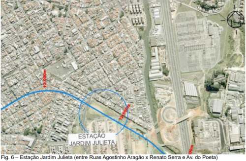 Localização da Estação Jardim Julieta que terá 19 metros de profundidade