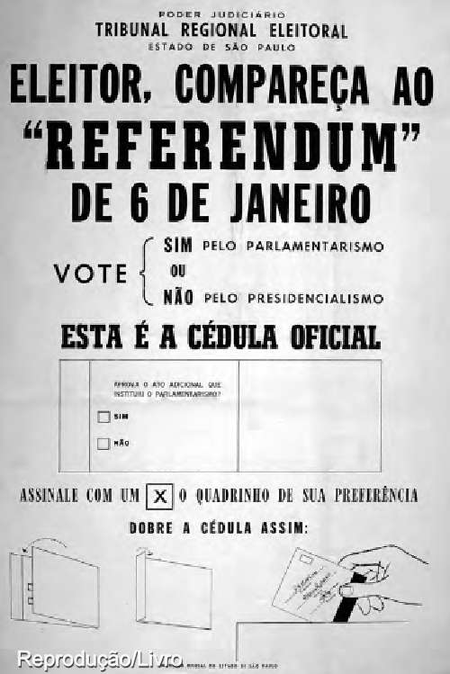 Enquanto isto, no universo político daquele passado, surgem o senador Auro de Moura Andrade, Carlos Lacerda, Carvalho Pinto, Leonel Brizola e Magalhães Pinto. Um  momento histórico foi organizado pela TRE-SP, em 6 de janeiro de 1963, com o “referendum” na convocação da população para decidir entre os regimes “presidencialista ou parlamentarismo”.
