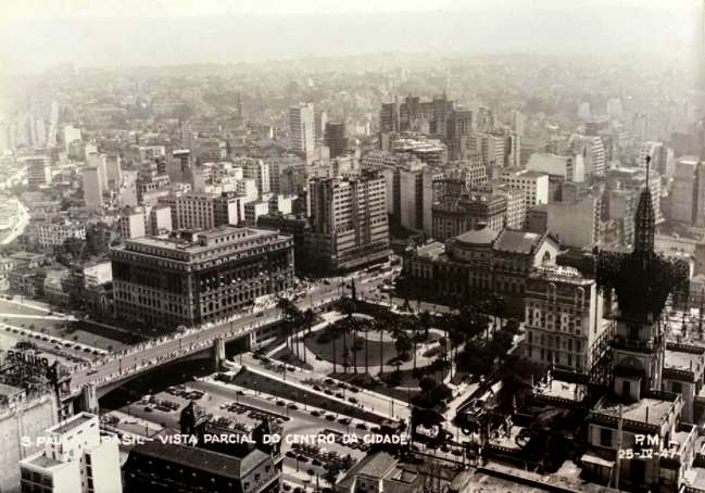 - foto aérea do centro de São Paulo mostrando o Anhangabaú (1947);