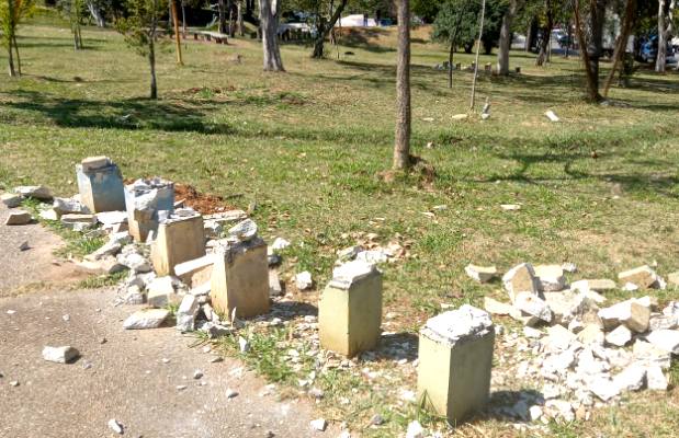 Do lado bom, o lado triste. Um dos motivos da “bronca” dos moradores é a demolição de dezenas de bancos de granito resistente ao tempo e em bom estado, que resistem inteiros há cerca de 22 anos — até com formas circulares e mesas com tabuleiros do jogo de damas — além da ausência de informações detalhadas sobre o projeto, o cronograma e o escopo da obra, que deverá ser executada pela empresa B&B Engenharia e Construções S/A — da Vila Medeiros.