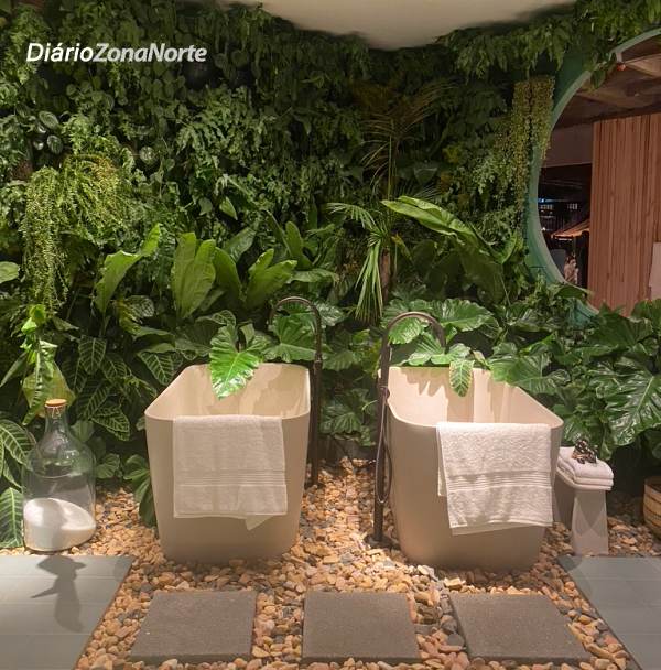 O espaço fluído apresenta seis banheiros e cinco minilounges com os lançamentos da marca  em metais e louças. Para materializar este enredo que aborda a natureza do tempo, o ambiente apresenta uma imersão na biofilia brasileira. A estética acolhedora é proporcionada pelo uso de revestimentos das marcas Portinari e Ceusa, além de pisos Castelatto.