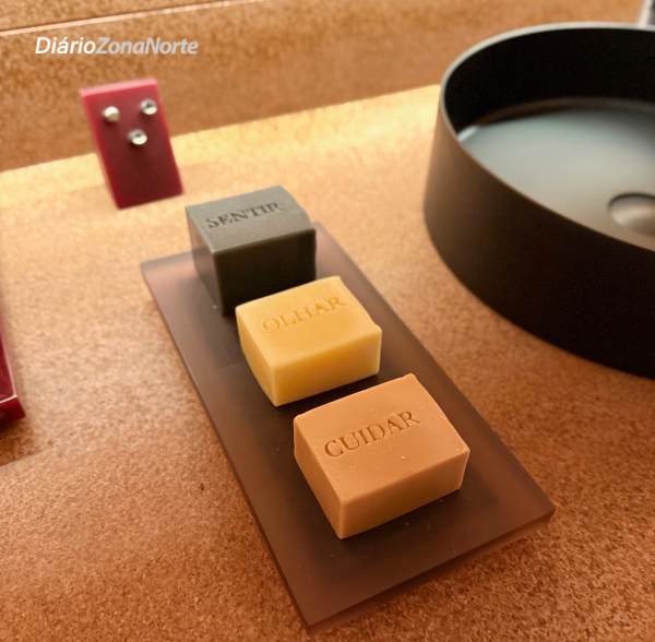 Com pé-direito duplo e desníveis no piso, a jornada começa por um túnel de entrada com projeto luminotécnico de Maneco Quinderé, criando uma transição poética entre o ritmo urbano e a imersão em um espaço acolhedor e banhado por luz.