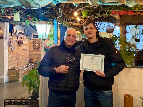 O sorteio da cesta da Nor Import, entre os participantes das duas turmas do curso, teve como vencedor Marcelinho Ferreira, que doou o prêmio para ser rifado – com o valor arrecadado em prol do projeto social da Osteria da Onça, que auxilia mensalmente 12 famílias em situação de vulnerabilidade social com cestas básicas.