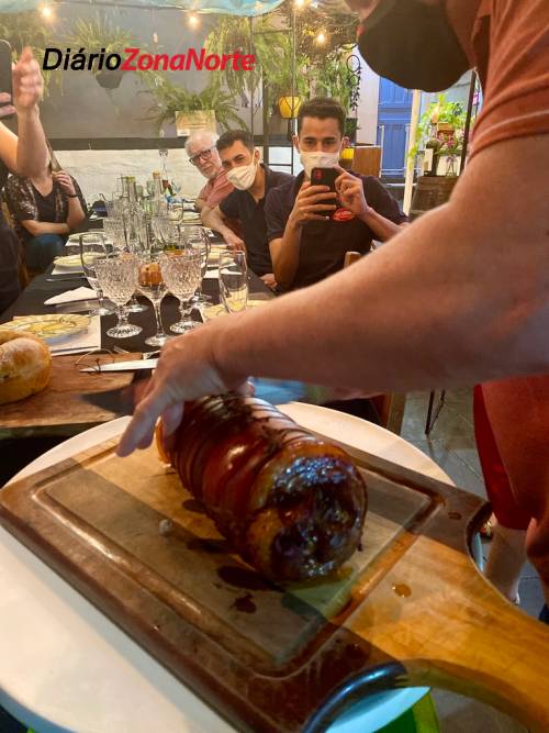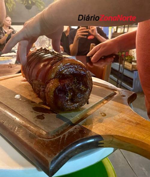 A segunda turma do curso teve a oportunidade de participar de uma degustação especialíssima. O restauranter Moacir Dargas, do Villa Caetano’s e participante do curso -, apresentou uma incrível porchetta suína, muito bem temperada, marinada por dois dias, defumada por oito horas e assada lentamente por outras seis horas. O prato é um dos lançamentos do Villa Caetano’s e, após imersa em óleo quente, pururuca e dá origem ao sensacional torresmo de rolo da casa.