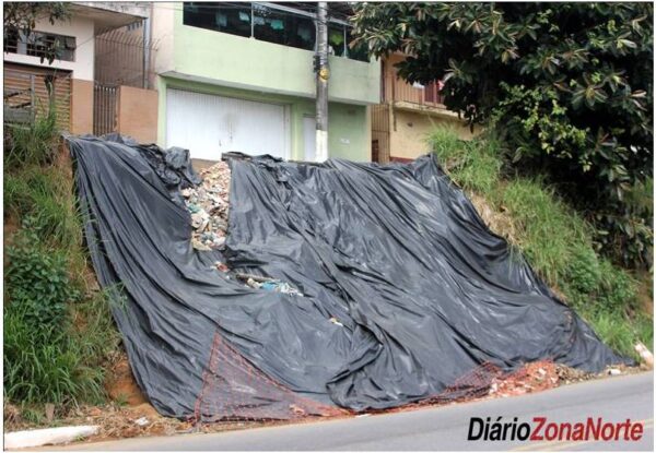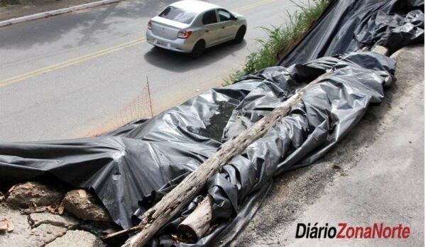 No local foi improvisada a cobertura com um pedaço de plástico preto fixado com restos de material de construção, as árvores próximas continuam sinalizando o perigo com rachaduras no solo e até solapamento junto às suas raízes.