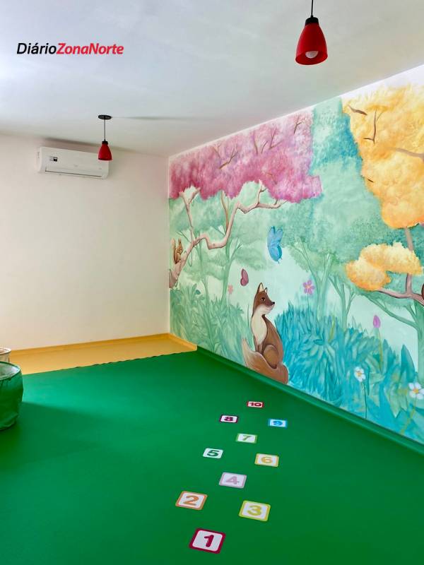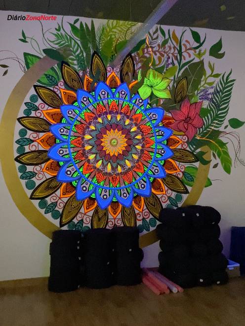 Totalmente feita a mão, quando a luz da sala é apagada, esta mandala mostra todo o seu esplendor. Para produzi-la a artista levou 12 dias, em um trabalho totalmente manual.  Outros ambientes receberam pinturas igualmente especiais, de autoria dos artistas Kátia Suzue e André Inea.