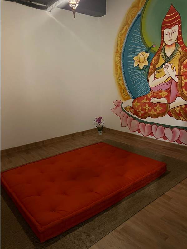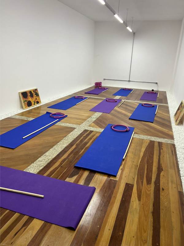 O lugar é absurdamente lindo e o bom gosto impera nos mínimos detalhes… Uma mandala sensorial, de autoria da arquiteta urbanista e artista Sabrina Souza – titular do Ateliê Art.Mudra, dá as boas vindas a quem entra na sala de yoga.