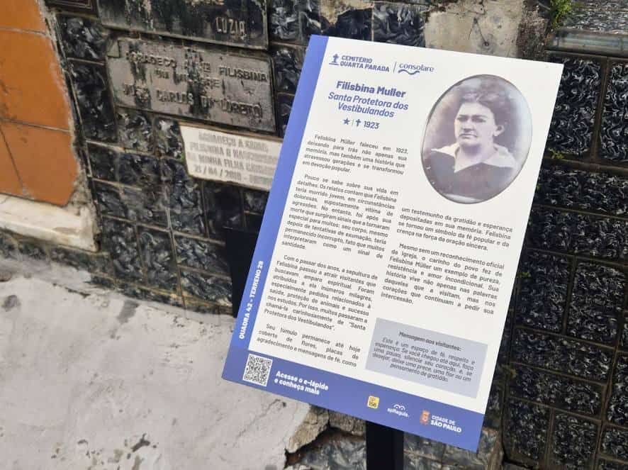 Identificação da milagreira Felisbina Muller no cemitério Quarta Parada | Consolare. Foto: Divulgação