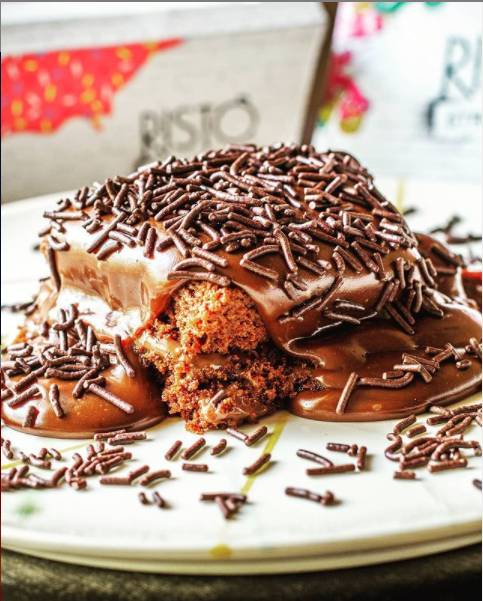 A sobremesa já consagrada como carro chefe do Ristô Street Food é o Bolo de brigadeiro recheado, molhado e com farta cobertura que escorre por todos os lados da generosa fatia.