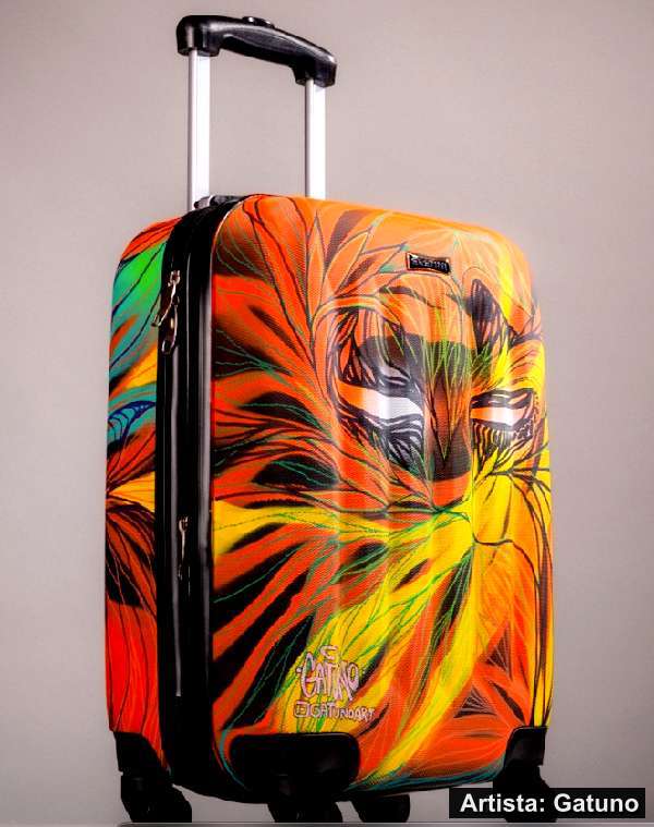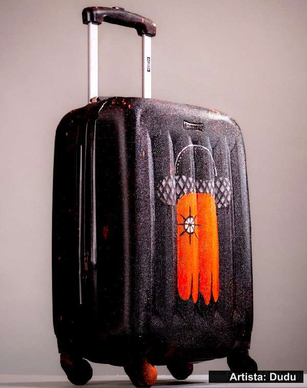 Uma mala de viagem personalizada e de fácil localização, até na esteira do desembarque no aeroporto. Até ponto de referência: “ali, ao lado daquela mala com uma obra de arte!”. E, acima de tudo, a arte brasileira viajando pelo mundo. Isto mesmo, uma obra de arte com espaço dedicado aos artistas brasileiros. Ainda há, por trás, uma contribuição social revertido das vendas à uma entidade.